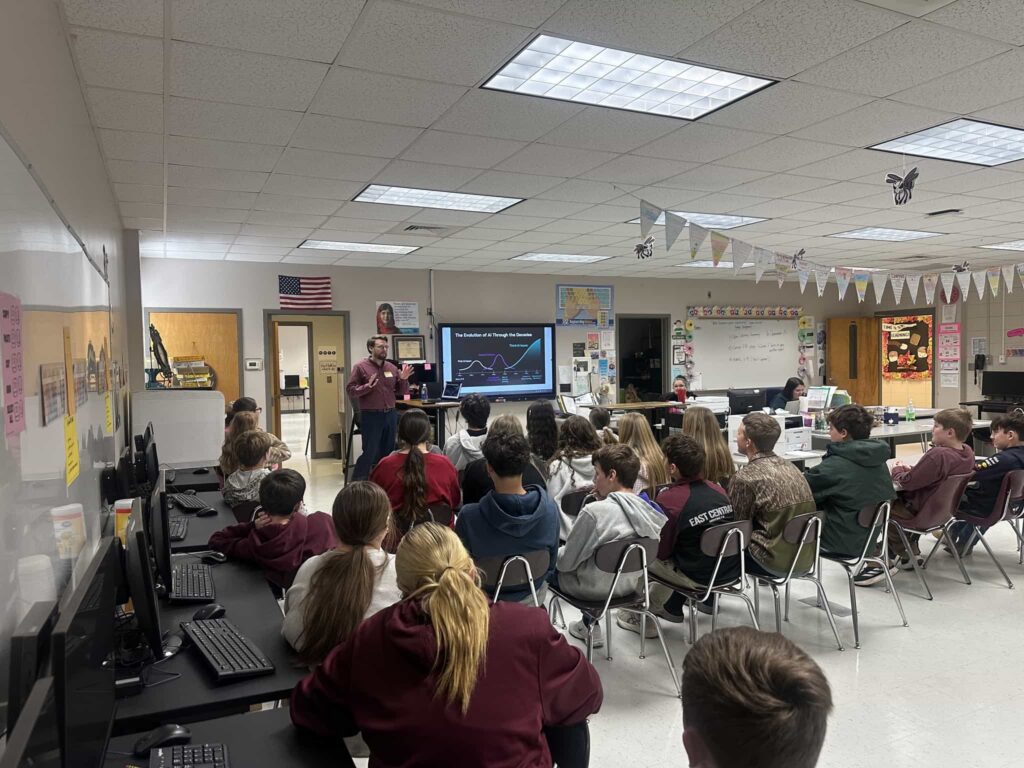 Today, Dr. Kollin Napier, Director of the Mississippi Artificial Intelligence Network – MAIN, spent time throughout the day with more than 100 8th grade Cyber Foundations students at East Central Middle School – Hurley, MS in the Jackson County School District – Mississippi for a discussion on AI literacy and responsible technology use. Students explored […]