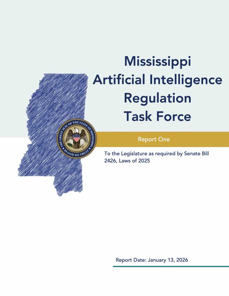 Senate Bill 2426, 2025 Regular Session, established the Mississippi Artificial Intelligence Regulation (AIR) Task Force to undertake a comprehensive analysis of all matters related to the regulation of artificial intelligence in the state. After taking testimony and collecting considerable information on the subject, we the Co-Chairs of the Task Force, on behalf of the other […]